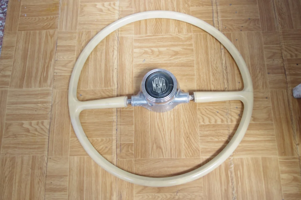 Після оновлення торпедо дуже захотілося придбати автентичне рульове колесо. Як відомо, оригінал був кольору слонової кістки. На відміну від пластику панелі приладів, керма траплялися у продажу, але їхня ціна була порівнянна з ціною нашого автомобіля. Почалося полювання.